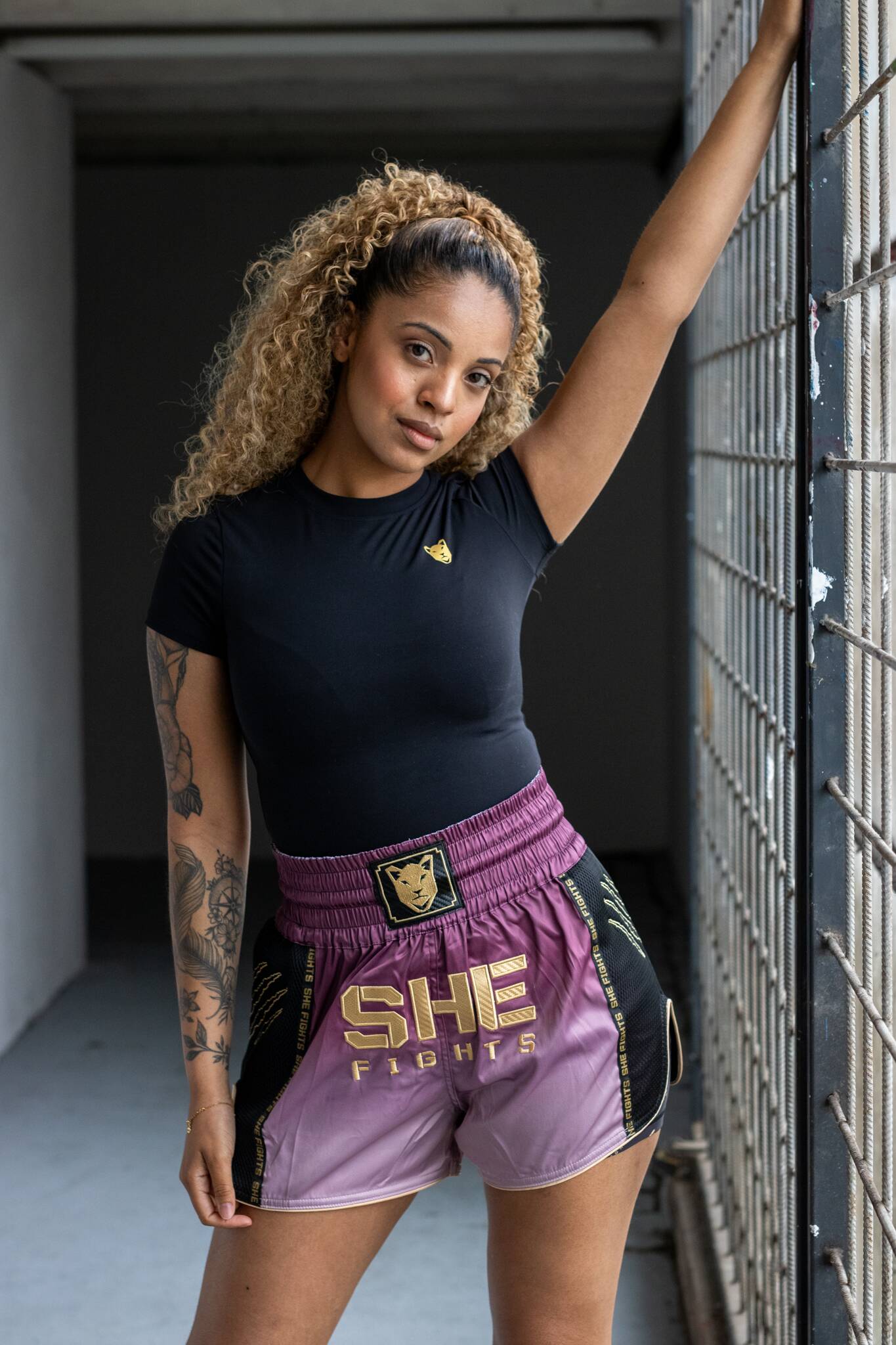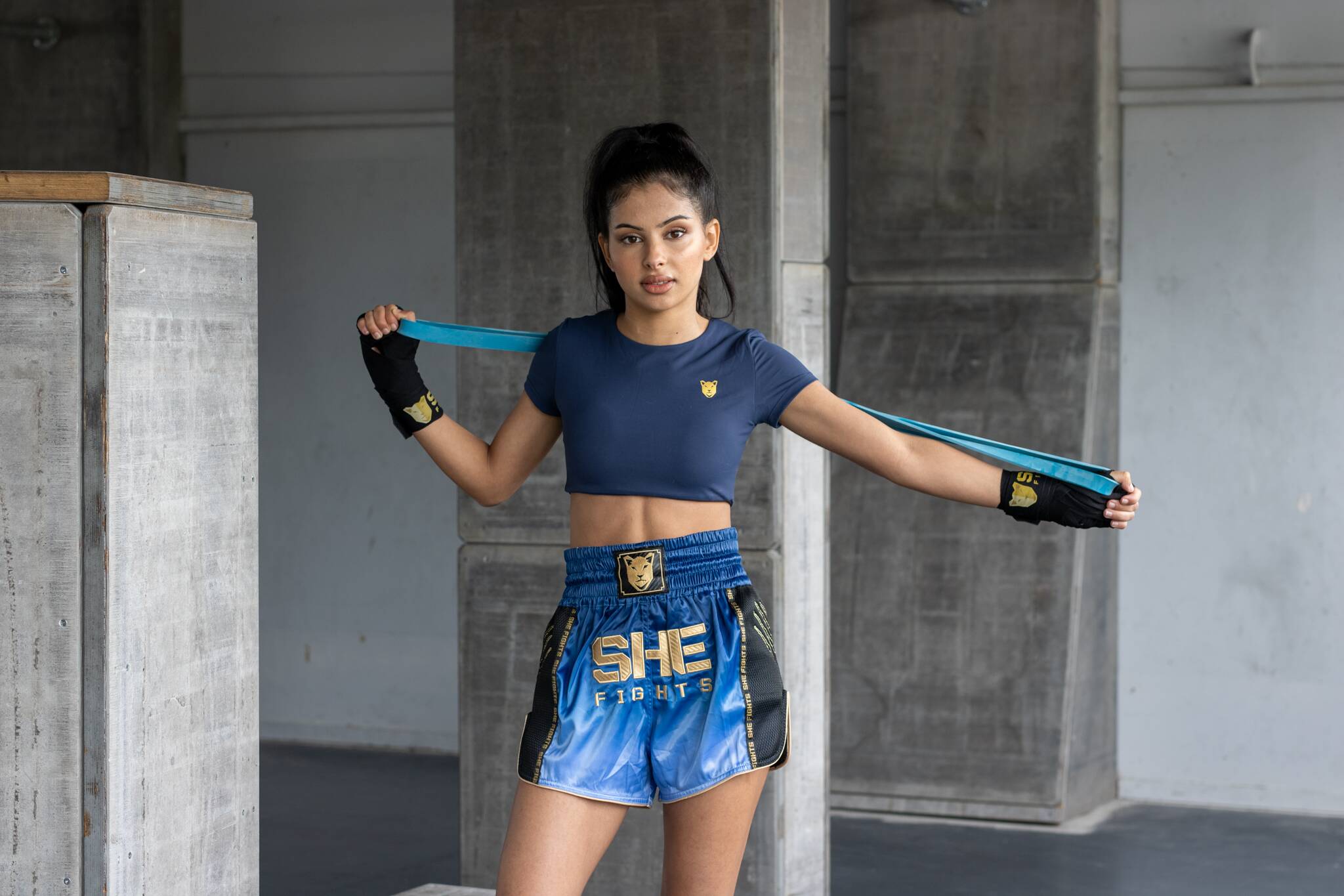 SHE FIGHTS shorts zijn exclusieve kickbox/muay thai shorts voor vrouwen. Ontworpen met hoogwaardige materialen en gericht op comfort, unieke details en een perfecte pasvorm. Combineer met onze onderbroeken voor extra comfort.