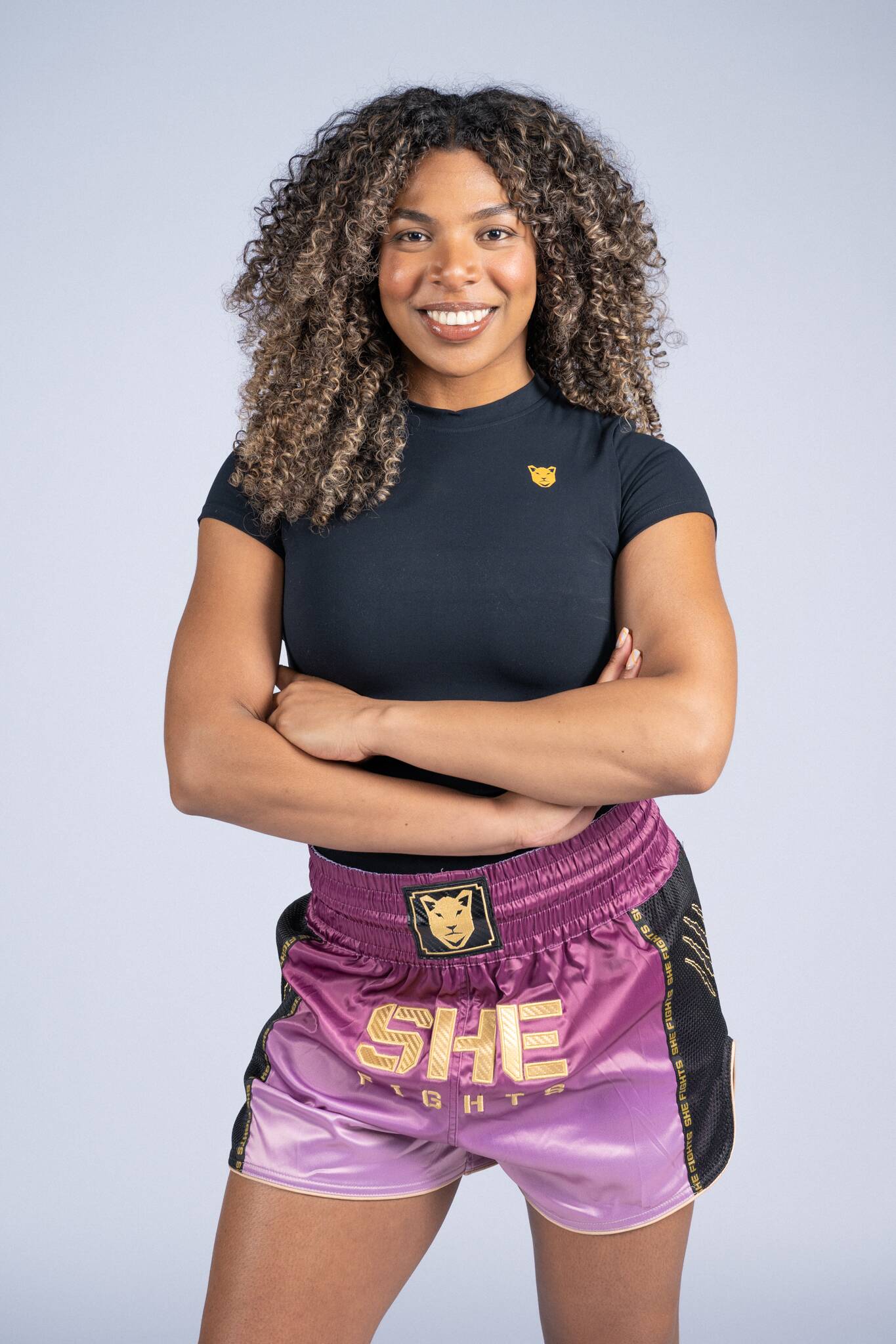 SHE FIGHTS vindt zijn oorsprong in de persoonlijke ervaringen en passie van Chelsea, de oprichter en eigenaar van SHE FIGHTS. Als vrouwelijke kickbokser ontdekte ze een gat in de markt tijdens haar zoektocht naar geschikte kickbox broekje. Bestaande shorts waren vaak uniseks of ontworpen voor mannen, met een uitstraling die niet resoneerde met het vrouwelijke esthetische gevoel. Bovendien hielden ze geen rekening met de unieke vormen van het vrouwelijk lichaam, wat leidde tot problemen met comfort en pasvorm.