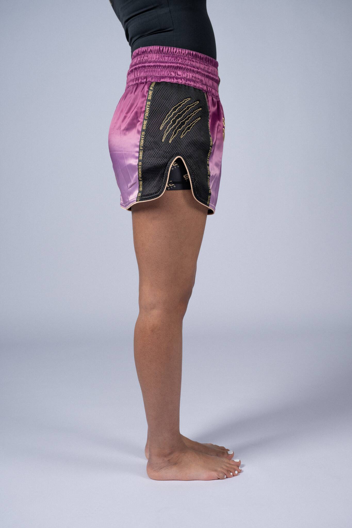 Vecht powerful in dit kickbox /muay thai broekje. Dit is een high end quality broekje, met prachtige gouden details, gefocust op comfort voor vrouwen.